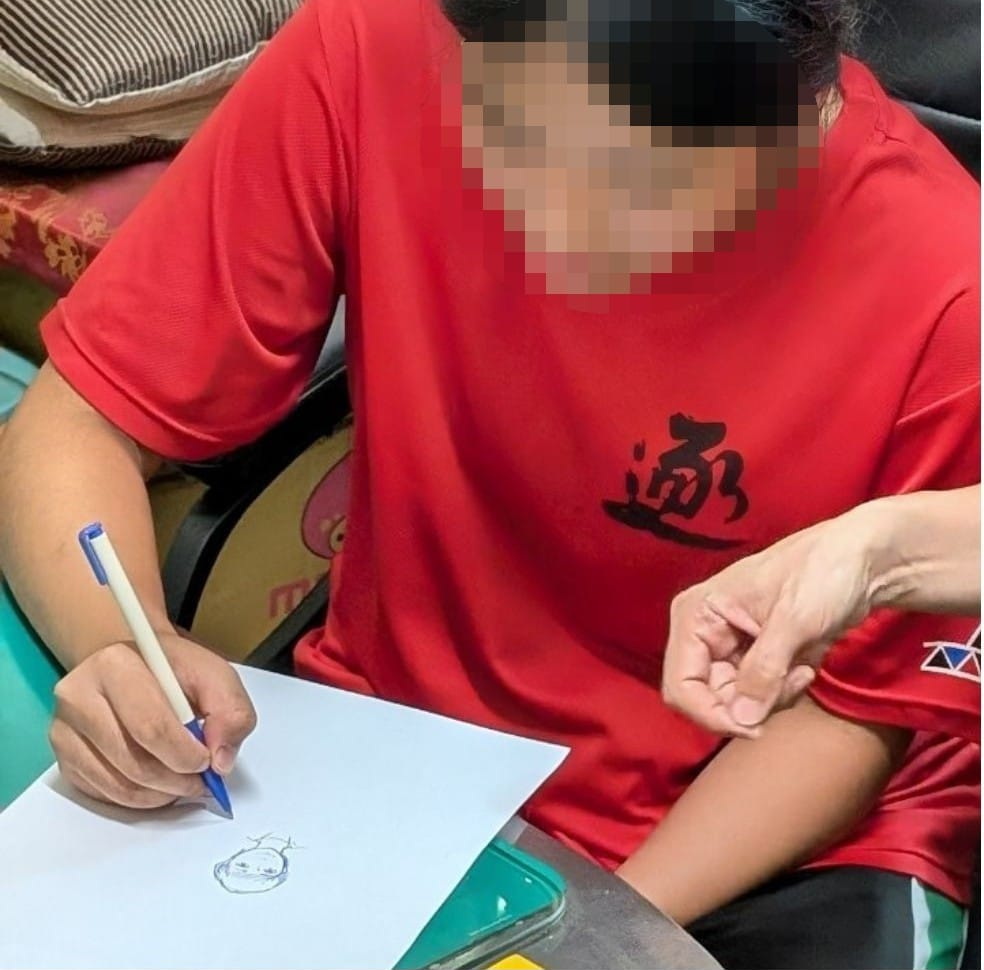 回到山下的街路,小蓉已經在家等著我們前去拜訪,她剛剛和媽媽結束一天辛勤的工作,是一個很安靜的女生。透過背景資料了解,因為家庭有些變故衝擊,對於我們的到訪原本有些拘謹,慢慢地聊聊,開始有些互動。小蓉對於畫畫有興趣,也應要求對現場人物描繪,完成後,也就略顯開朗話也多了,也比較像這個年紀的表現。